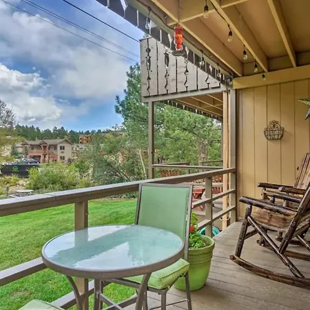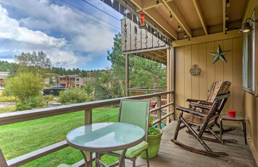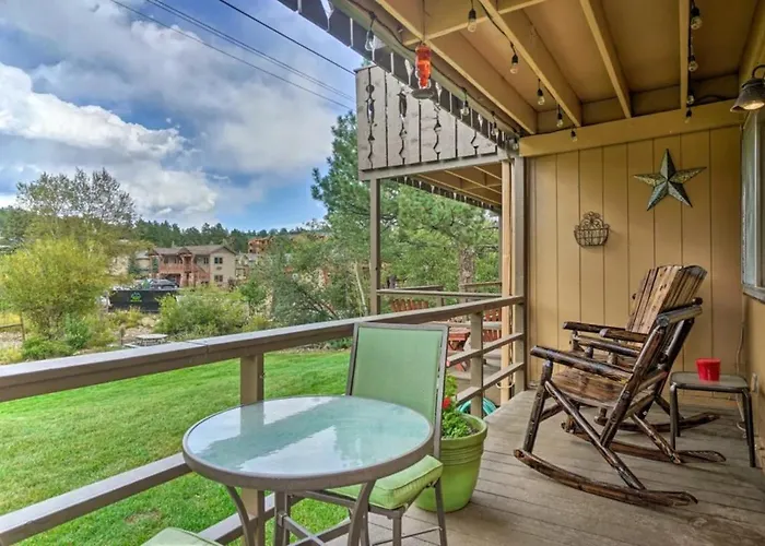 Tijdens een verblijf in Estes Escape-Walk Downtown - Free Mountain Coaster Estes Park appartement kunnen gasten zich ontspannen op een terras 3 km verwijderd van de Sombrero Ranch. Bij het appartement zijn Wi-Fi evenals een privéparkeerplaats beschikbaar.
